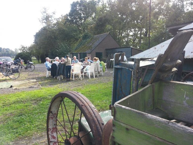 Dertig parochianen op weg met de fiets en wie had zich deze dag beter weer kunnen wensen. Na de dienst was er eerst de koffie met cake, die zich goed liet smaken. De meesten waren op de fiets naar de kerk, want we zouden nadien een kleine tocht maken naar onze bestemming.