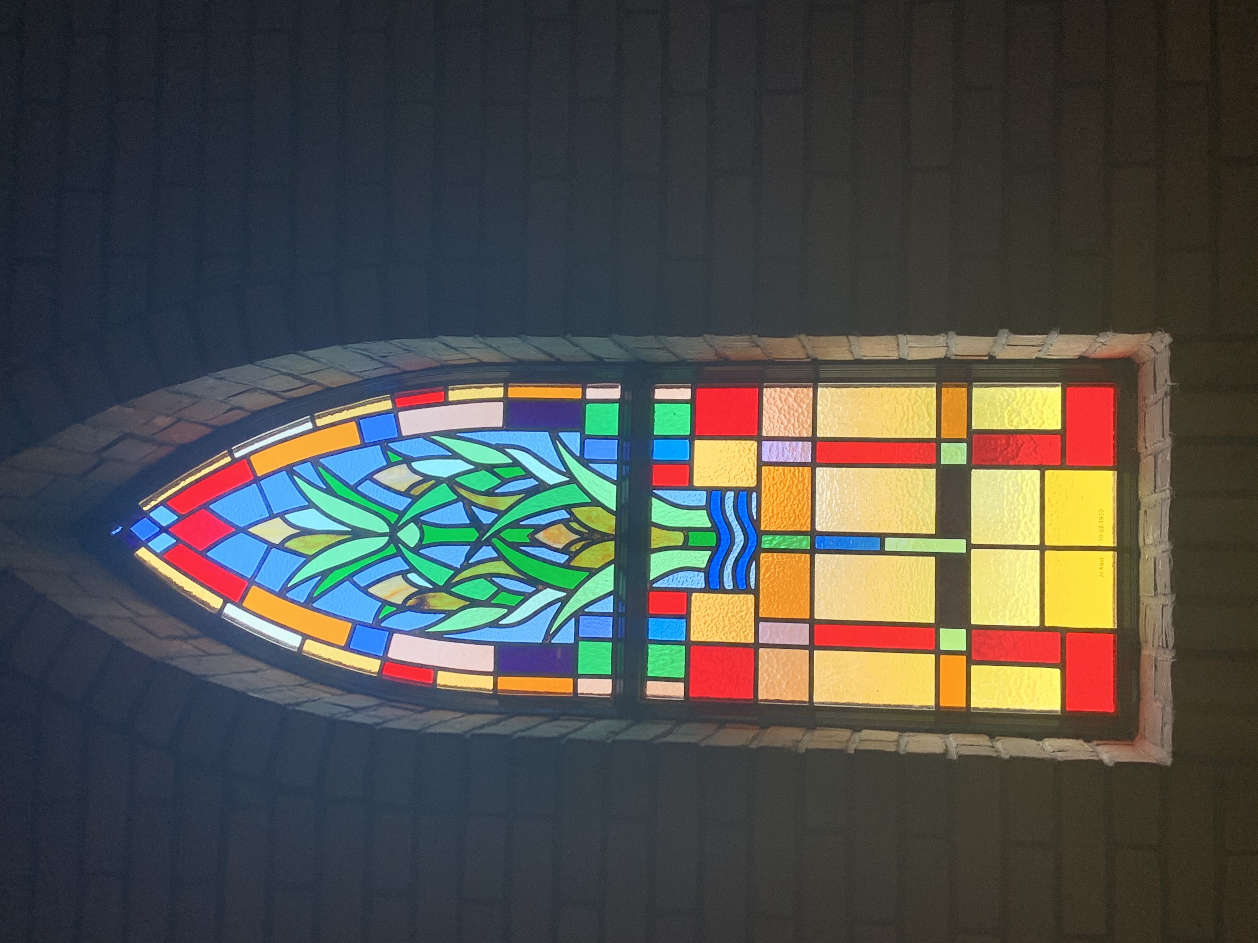 Er zijn inmiddels meerdere glas in loodramen geplaatst.