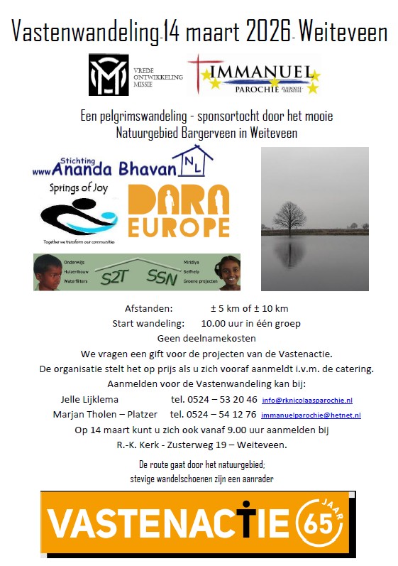 Zaterdag 14 maart wordt de Vastenwandeling georganiseerd in Weiteveen.