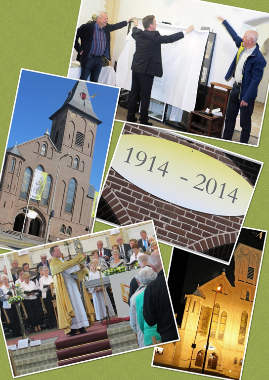 Zaterdag 17 mei werd in het kader van het eeuwfeest van onze kerk een expositie geopend, waarin achter in de kerk de vitrines (met allerlei voorwerpen en geschriften uit het verleden), beelden en vaandels het middelpunt vormden. Overal, ook bij veel onderdelen van het interieur van de kerk, waren kaartjes met uitleg geplaatst. Een honderdtal mensen bezocht die middag al de expositie en volgde de beelden van de PowerPointpresentatie van Wim Huisman; voor beide onderdelen was er veel waardering. Hoogtepunt van de middag was natuurlijk het hijsen van de banieren met het nieuwe parochielogo door de ontwerper, parochiaan Huub Linssen. Ter afsluiting volgde er een plechtig lof, waaraan het koor Cantemus Domino zijn medewerking verleende. Het Rijke Roomsche Leven herleefde!